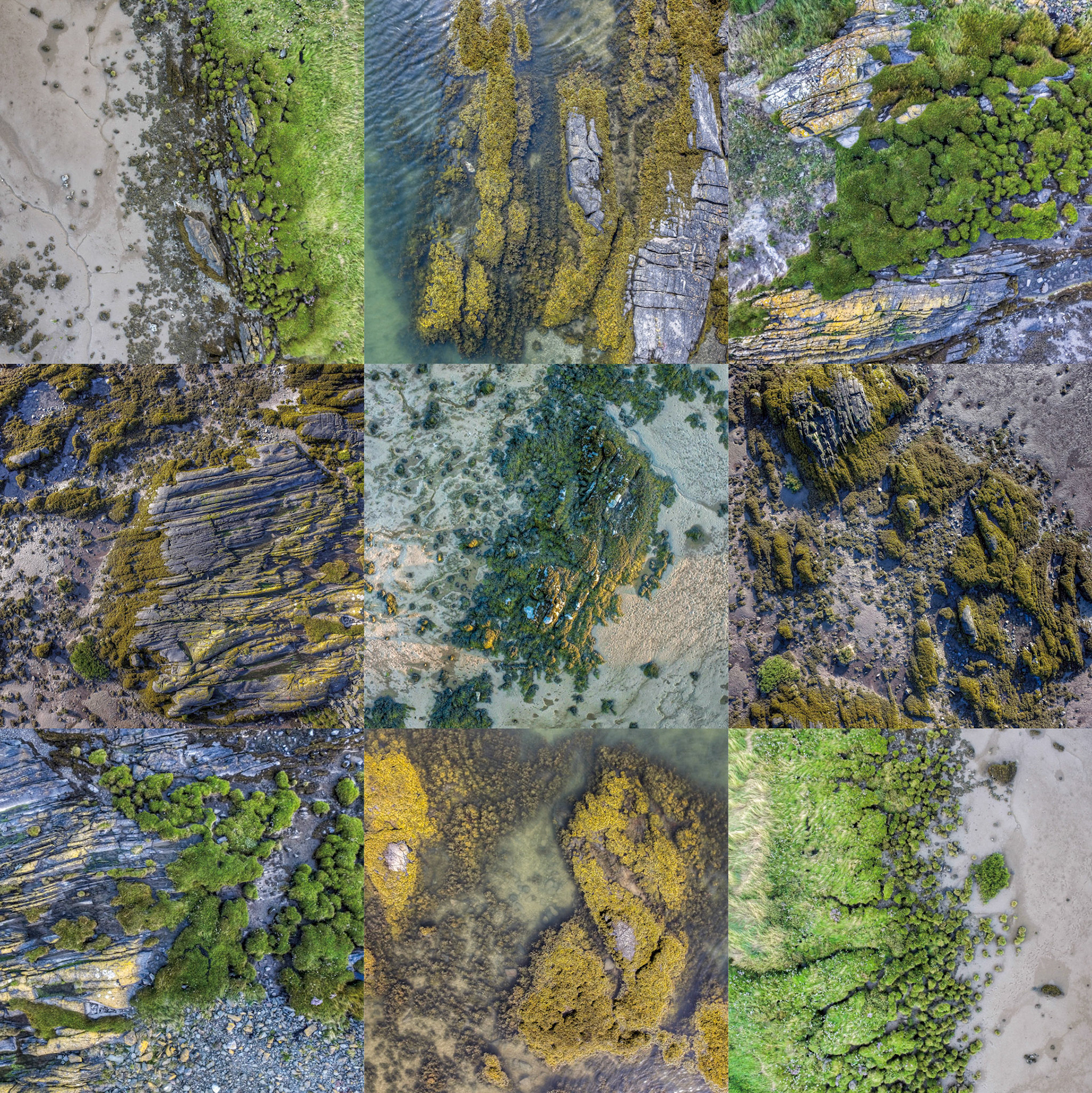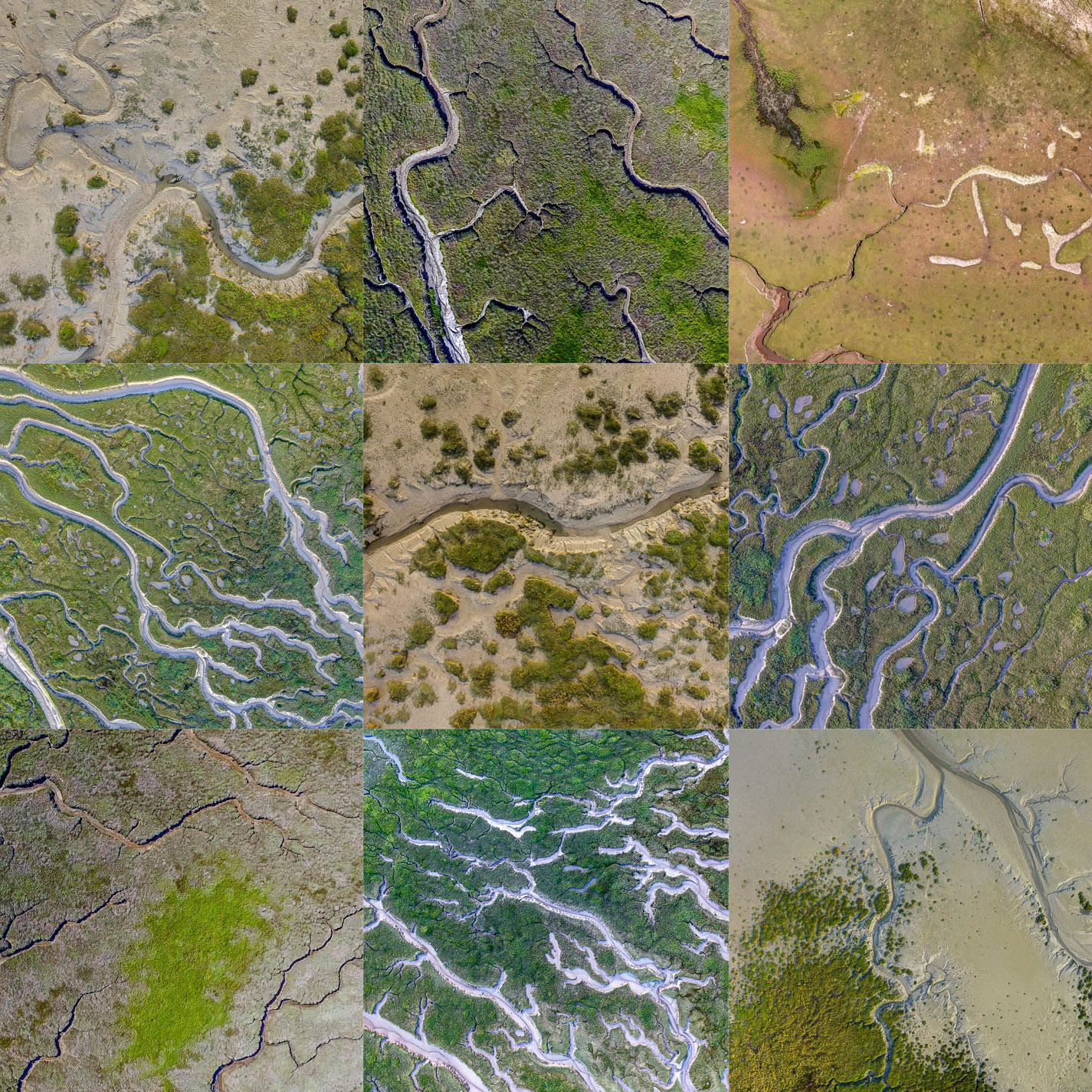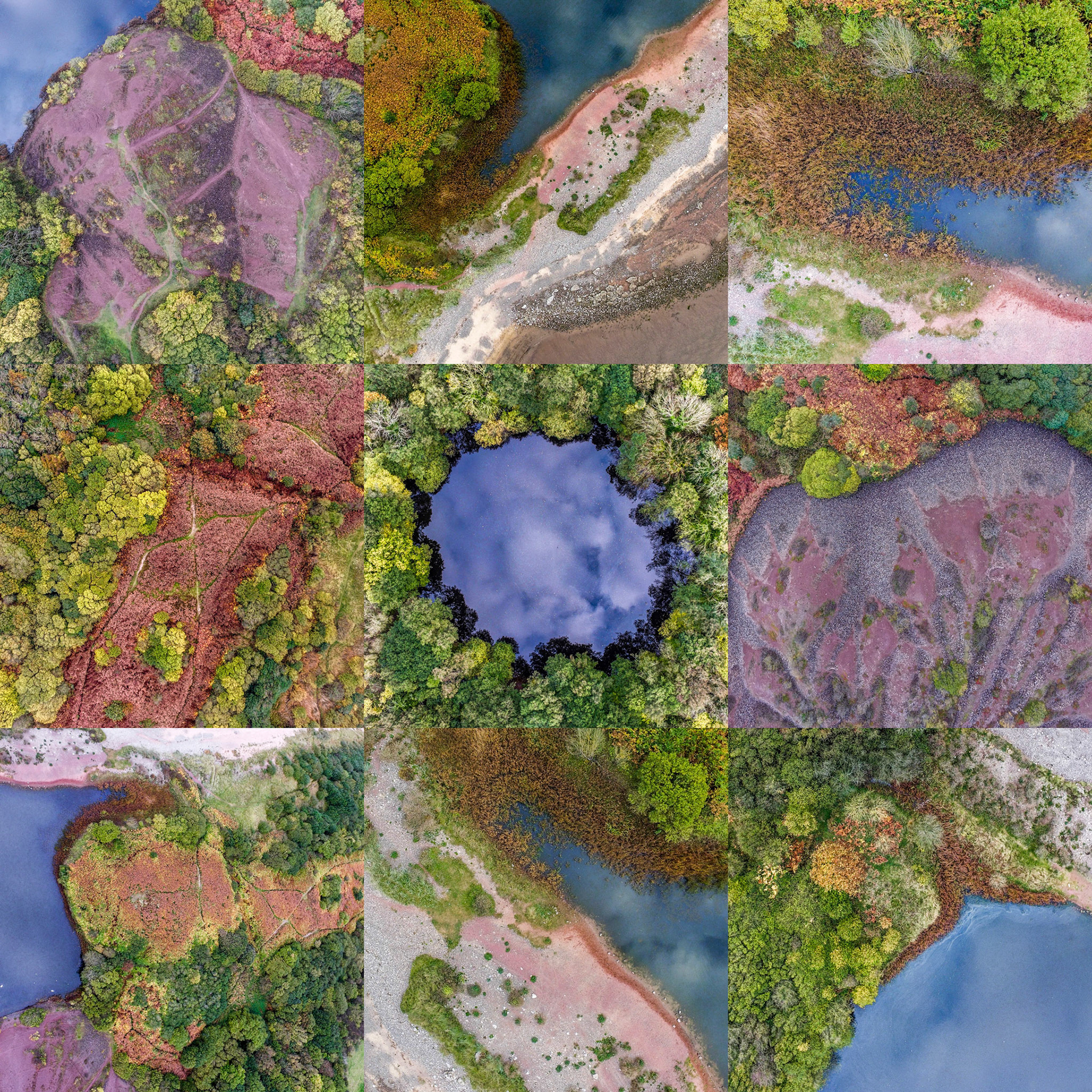 In these artworks, the shapes, colours and textures captured from the airborne camera are selected and arranged to create harmonious and balanced compositions.