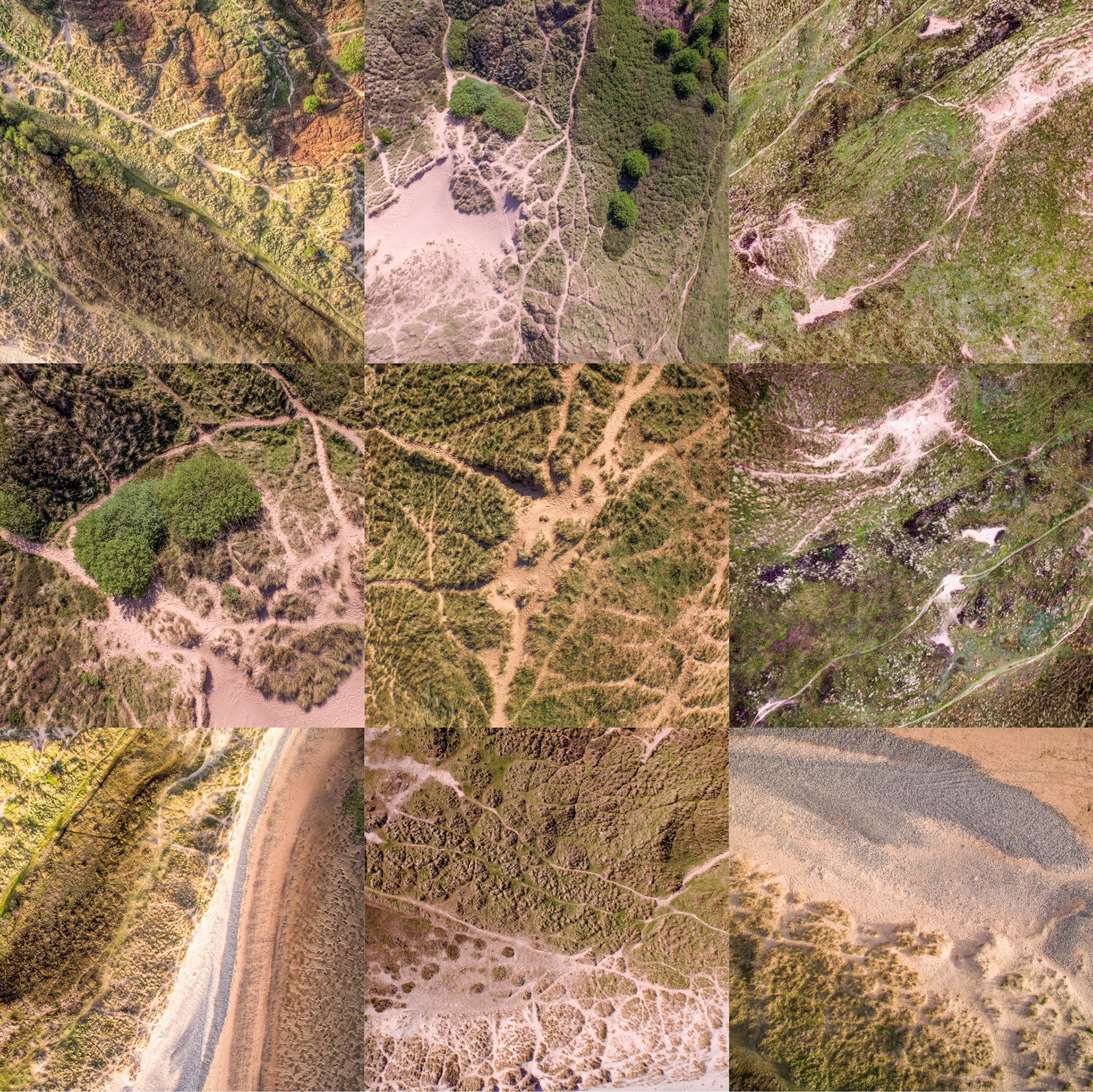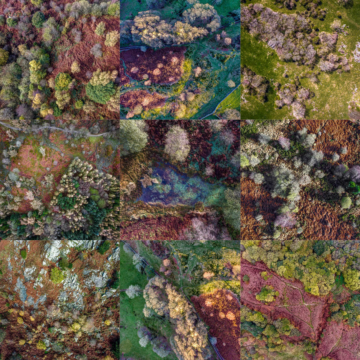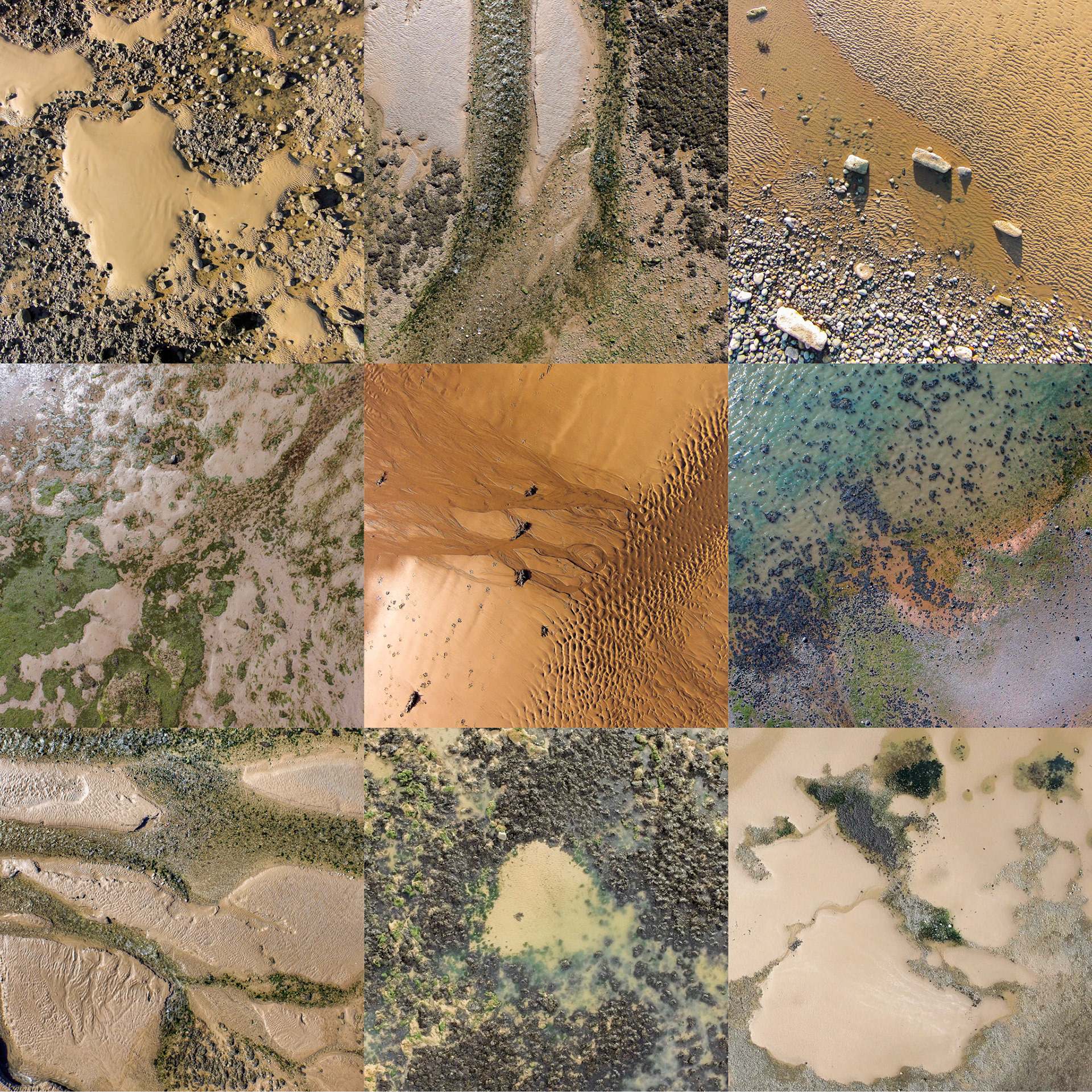In these artworks, the shapes, colours and textures captured from the airborne camera are selected and arranged to create harmonious and balanced compositions.